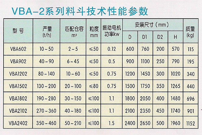 VBA系列振動料斗是本公司開發(fā)生產(chǎn)的一種新型振動給料設備,安裝在各種料倉下部,通過振動使物料活化,能夠有效消除物料的起拱、堵塞和粘倉現(xiàn)象,解決料倉排料難的問題。廣泛用于化工、建材、冶金、機械制造、糧食及食品加工、飼料加工、環(huán)保、陶瓷等行業(yè)。